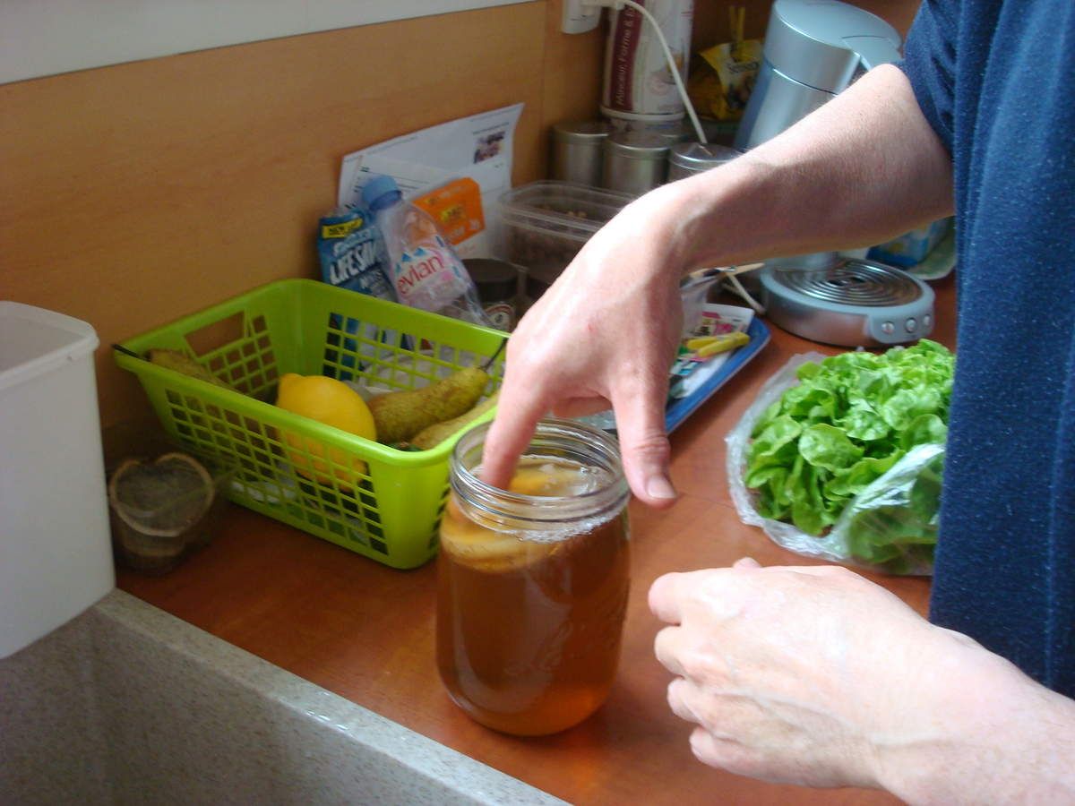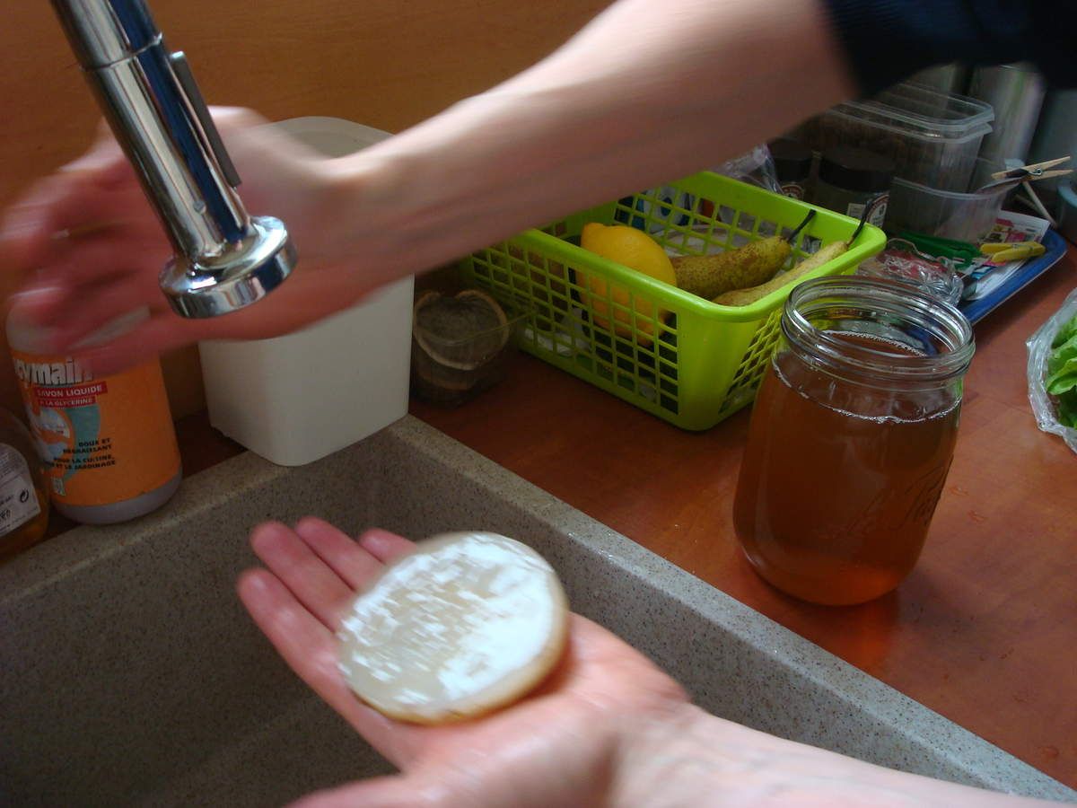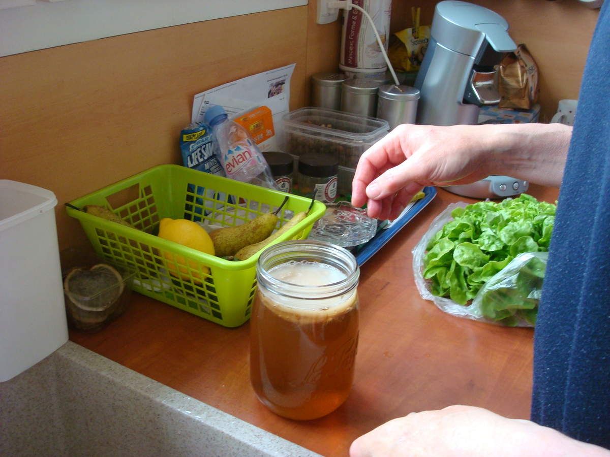 S'il a déjà fait plusieurs cycles, la couche inférieure (plus terne, moins claire) peut se détacher. Elle peut servir de souche de secours (dans un tupperware au réfrigérateur ou au congélateur), être envoyée pour partage avec un peu de vinaigre de cidre, ou rejoindre la terre par le composteur.